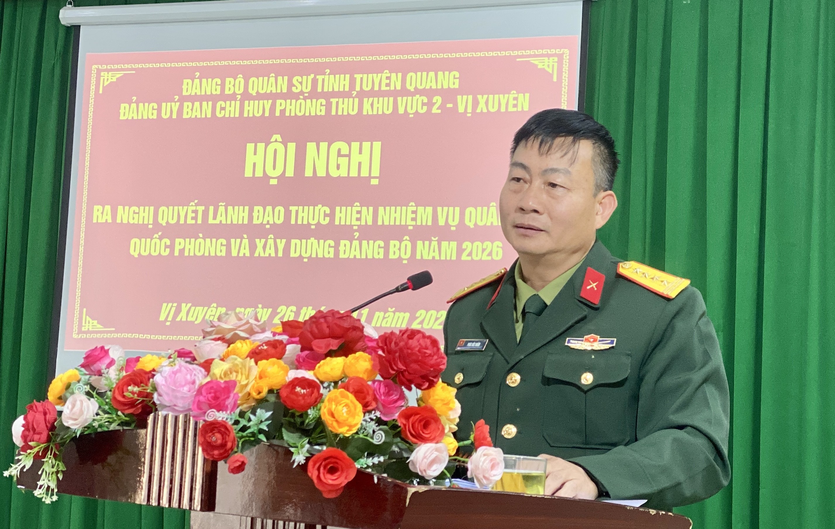 Phát biểu tại Hội nghị Lãnh đạo Bộ CHQS tỉnh đã biểu dương kết quả mà Ban chỉ huy phòng thủ khu vực 2 - Vị Xuyên đã đạt được trong năm 2025. Đồng thời, đồng chí cũng đề nghị cần làm tốt một số nhiệm vụ trọng tâm sau: Tiếp tục quán triệt các Chỉ thị, văn bản về công tác quân sự. Lãnh đạo duy trì nghiêm chế độ trực sẵn sàng chiến đấu. Nâng cao chất lượng diễn tập, hội thi, hội thao. Thực hiện tốt công tác giáo dục, động viên cán bộ phát huy truyền thống bộ đội cụ Hồ. Bảo đảm tốt công tác hậu cần, quan tâm đời sống vật chất cho cán bộ chiến sỹ. Duy trì đúng nguyên tắc tổ chức và hoạt động của Đảng./.