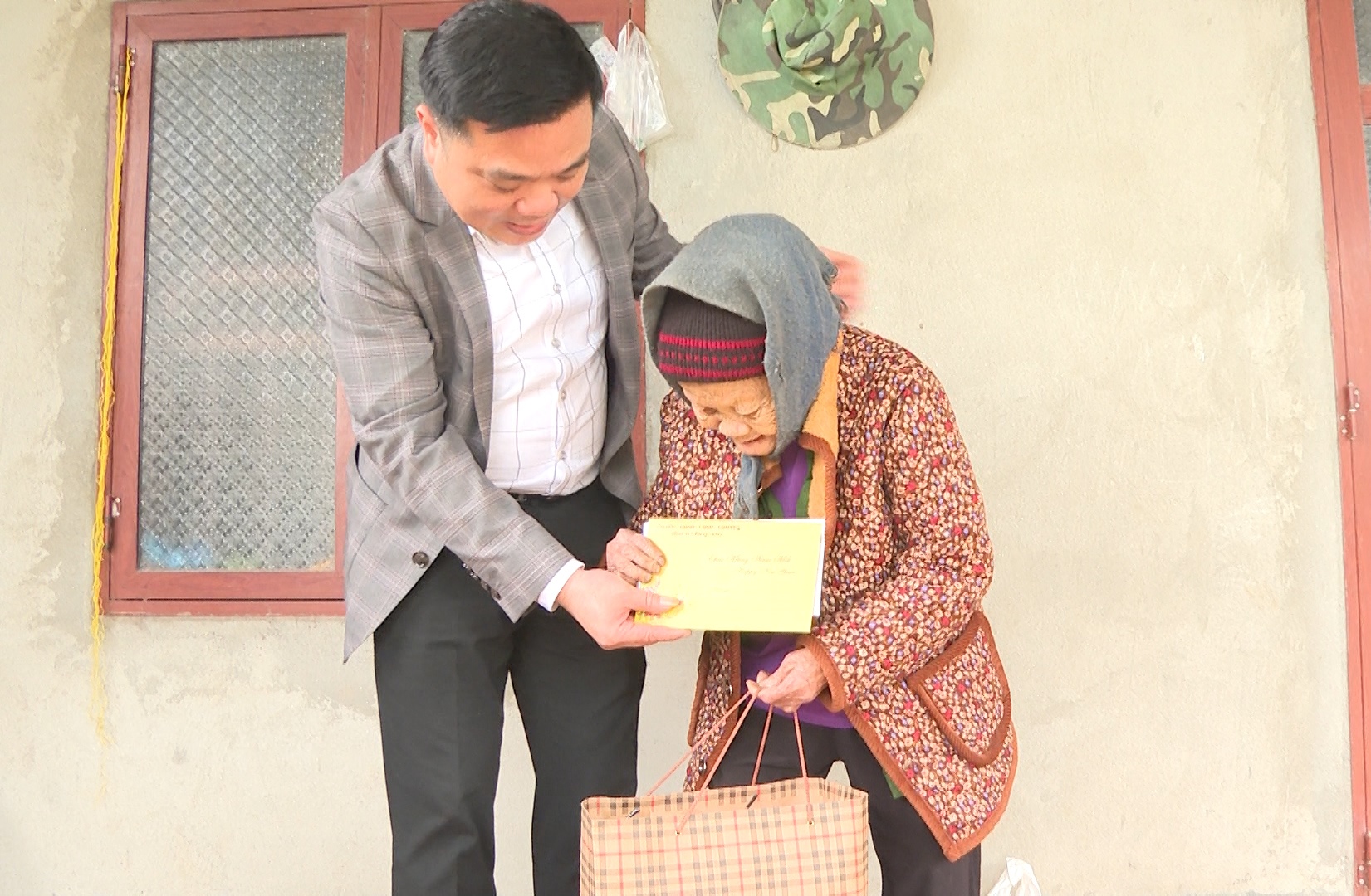 Đồng chí Chủ tịch UBND xã đã đến chúc Tết, tặng quà ông Đinh Thế Lịch, bệnh binh, thôn 7; Cụ Trần Thị Hợp – 100 tuổi, thôn 1; Bà Lý Thị Châm – 89 tuổi, thôn Đông Cáp 2; Phàn Minh Dưỡng – người khuyết tật, thôn Đông Cáp 2; Bà Lý Thị Châm – 90 tuổi, thôn Đông Cáp 2.