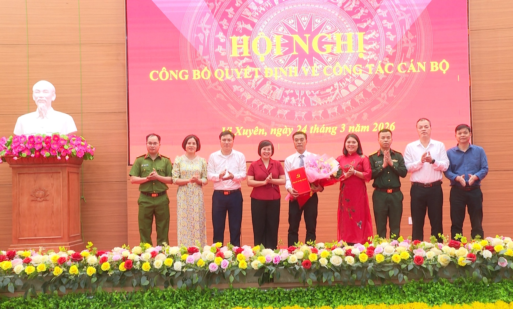 Tại hội nghị, đồng chí Nguyễn Thành Trung, Ủy viên BCH Đảng bộ Tỉnh, Phó Trưởng Ban Tổ chức Tỉnh ủy đã công bố quyết định của BTV Tỉnh ủy đối với 03 đồng chí. Theo đó, đồng chí Lê Thị Thuận, Phó Bí thư thường trực Đảng ủy xã Vị Xuyên thôi tham gia BCH Đảng bộ, BTV Đảng ủy xã Vị Xuyên, thôi giữ chức Phó Bí thư thường trực Đảng ủy xã Vị Xuyên, nhiệm kỳ 2025 – 2030. Điều động đến nhận công tác tại Đảng ủy xã Linh Hồ, chỉ định tham gia BCH Đảng bộ, BTV Đảng ủy xã Linh Hồ, giữ chức Phó Bí thư thường trực Đảng ủy xã Linh Hồ, nhiệm kỳ 2025 – 2030; Chỉ định đồng chí Nguyễn Tiến Hùng, Phó Bí thư Đảng ủy, Chủ tịch UBND xã Vị Xuyên giữ chức Phó Bí thư thường trực Đảng ủy xã Vị Xuyên, nhiệm kỳ 2025 - 2030; Chỉ định đồng chí Lê Kiên, Phó Bí thư Đảng ủy, Chủ tịch UBND xã Việt Lâm thôi tham gia BCH Đảng bộ, BTV Đảng ủy xã Việt Lâm, thôi giữ chức Phó Bí thư Đảng ủy xã Việt Lâm. Điều động đến công tác tại UBND xã Vị Xuyên, chỉ định tham gia BCH Đảng bộ, BTV Đảng ủy xã Vị Xuyên, giữ chức Phó Bí thư Đảng ủy xã Vị Xuyên, nhiệm kỳ 2025 – 2030.