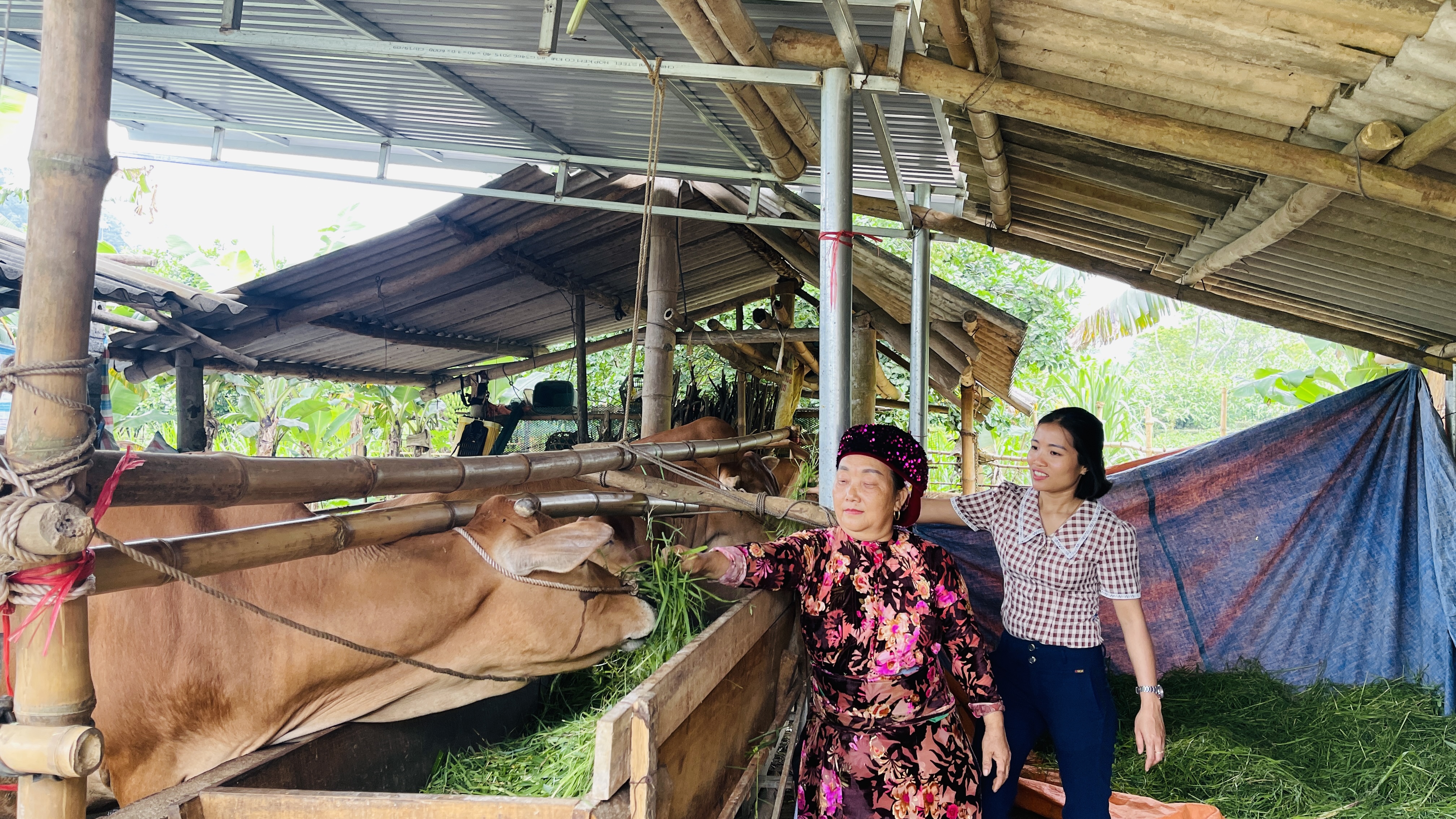 Sinh ra và lớn lên trong một gia đình thuần nông, chị Mã Thị Chúa luôn trăn trở làm sao để phát triển kinh tế gia đình, phấn đấu thoát nghèo. Với quyết tâm không cam chịu đói nghèo cùng với tính cần cù, chị đã quyết tâm xây dựng kinh tế với số vốn dành dụm được của gia đình. Năm 2022 thông qua Hội LHPN thị trấn Việt Lâm chị được tiếp cận nguồn vốn vay từ NHCSXH Huyện Vị Xuyên với số vốn là 50 triệu đồng. Chị đã mua 1 đôi bò giống và tìm tòi, học hỏi kinh nghiệm chăn nuôi qua các mô hình, tham gia các lớp tập huấn. Vừa làm, chị vừa trau dồi, tích lũy kinh nghiệm. Việc chăn nuôi của gia đình chị gặp thuận lợi, từ 1 đôi bò ban đầu, đến nay tổng đàn bò của gia đình chị phát triển lên 5 con bò, 2 con trâu. Chị Chúa vui vẻ nói: Để phát triển chăn nuôi gia súc hiệu quả, tôi luôn tìm tòi, học hỏi, nắm kỹ các khâu kỹ thuật cơ bản như công tác chăm sóc, vệ sinh chuồng trại; kỹ thuật phòng trừ dịch bệnh và các loại thức ăn cho đàn bò để đảm bảo dinh dưỡng, nguồn thức ăn đầy đủ cho đàn bò; Đồng thời gia đình tôi tận dụng chất thải trong chăn nuôi để bón cho cây trồng.