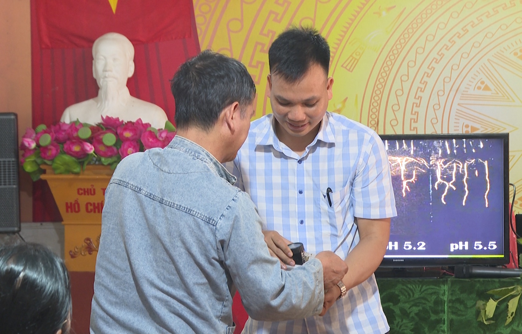 Bên cạnh đó, bà con nông dân đã mang mẫu đất ruộng đến lớp tập huấn để được kiểm tra trực tiếp độ PH trong đất. Từ đó có biện pháp xử lý, cải tạo đất theo hướng dẫn của Hợp tác xã.