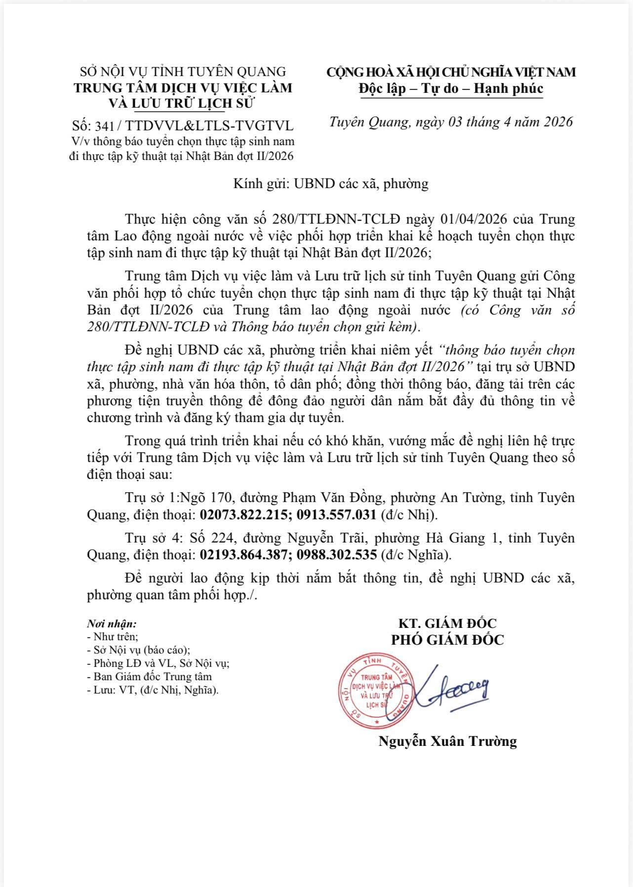 Thông báo tuyển chọn thực tập sinh nam đi thực tập kỹ thuật tại Nhật Bản đợt 2/2026